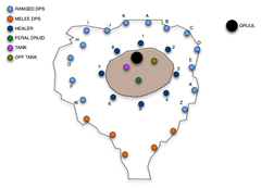 The Healers need to concentrate all healing energy on or around the place on the map designated "K". That's where I, Webinara, will be hanging out as long as I can until Gruul starts throwing us all around like 25 ice cubes in a rented margarita machine.